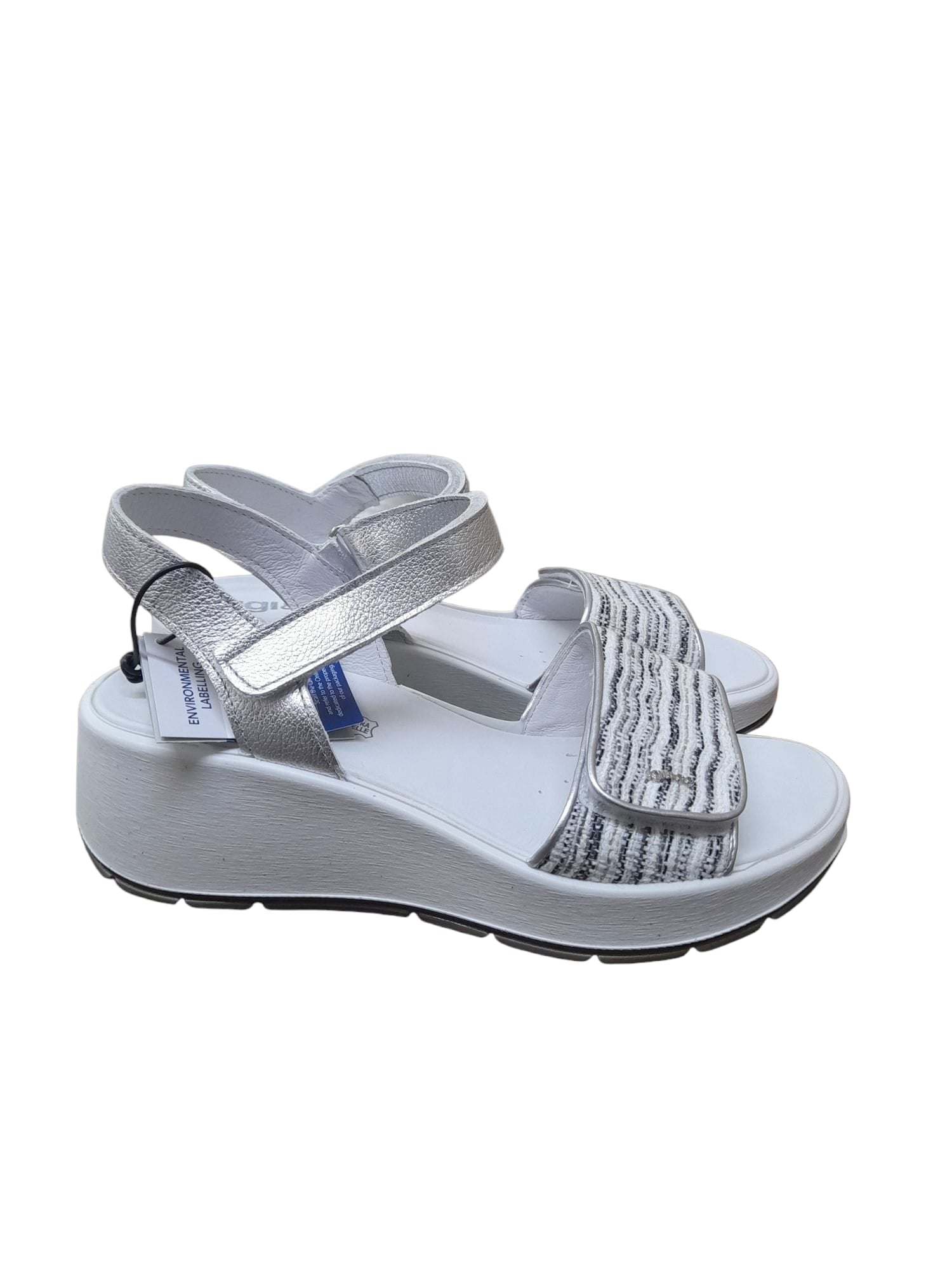 Sandalo IGI&CO da donna a zeppa MADE IN ITALY pelle e tessuto jamir argento e nero
