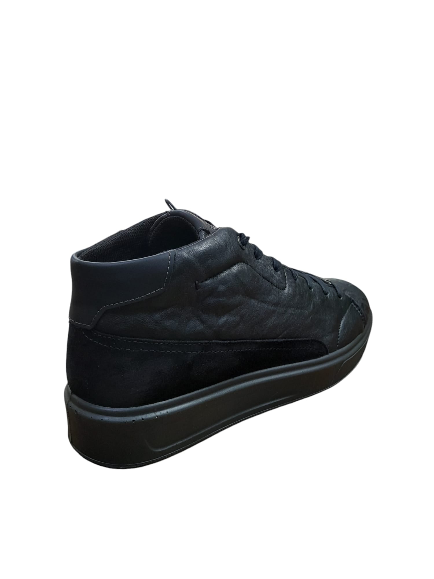 Sneaker IGI&CO scarpa uomo MADE IN ITALY pelle/capra stropicciato nero colletto alto